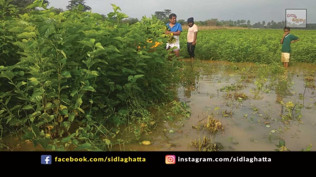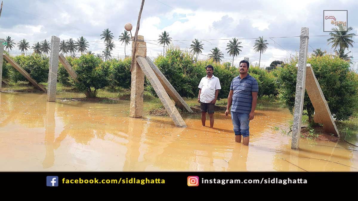 ಶಿಡ್ಲಘಟ್ಟ ತಾಲ್ಲೂಕಿನ ಬೆಳ್ಳೂಟಿ ಕೆರೆಯು ಕೋಡಿ ಹರಿದಿದ್ದು, ನೀರು ಮುಂದೆ ಹರಿಯಲು ಮೊದಲಿದ್ದ ಭಕ್ತರಹಳ್ಳಿ ನಾರವಾಳ ರಾಜಕಾಲುವೆ ಒತ್ತುವರಿಯಾದ ಕಾರಣ, ಭಕ್ತರಹಳ್ಳಿ ಪಕ್ಕದಿಂದ ಕಾಕಚೊಕ್ಕಂಡಹಳ್ಳಿ ಹಾದು ಭದ್ರನ ಕೆರೆ ತಲುಪಬೇಕಿದ್ದ ನೀರು ಸುಮಾರು ಒಂದೂವರೆ ಕಿ.ಮೀ ವ್ಯಾಪ್ತಿಯಲ್ಲಿ ಜಮೀನುಗಳ ಮೇಲೆ ಹರಿದಿದೆ. ತಾಲ್ಲೂಕಿನ ಭಕ್ತರಹಳ್ಳಿ, ಬೆಳ್ಳೂಟಿ, ಮೇಲೂರು, ಚೌಡಸಂದ್ರ ವ್ಯಾಪ್ತಿಯ ಸುಮಾರು 1200 ಎಕರೆ ಕೃಷಿ ಭೂಮಿಯಲ್ಲಿ ನೀರು ನಿಂತಿದ್ದು, ರೈತರು ಕಂಗಾಲಾಗಿದ್ದಾರೆ.