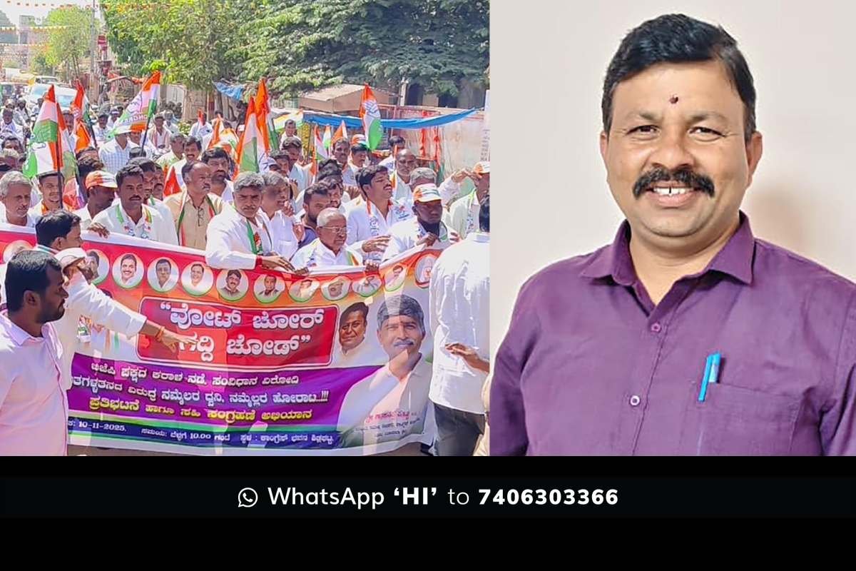 Sidlaghatta, Chikkaballapur : ಈ ದಿನ ಶಿಡ್ಲಘಟ್ಟದಲ್ಲಿ ನಡೆದ ಓಟ್ ಚೋರ್ ಗದ್ದಿ ಛೋಡ್ ಕಾರ್ಯಕ್ರಮದಲ್ಲಿ ಪಕ್ಷದ ಶಿಷ್ಟಾಚಾರವನ್ನು ಉಲ್ಲಂಘಿಸಲಾಗಿದೆ. ಉದ್ದೇಶಪೂರ್ವಕವಾಗಿ ಕಾಂಗ್ರೆಸ್ ಕಾರ್ಯಕರ್ತರನ್ನು ದಿಕ್ಕು ತಪ್ಪಿಸುವ ಹುನ್ನಾರ ನಡೆದಿದೆ ಎಂದು ಐ.ಎನ್‌.ಟಿ.ಯು.ಸಿ ರಾಜ್ಯ ಸಂಘಟನಾ ಕಾರ್ಯದರ್ಶಿ ಕುಂದಲಗುರ್ಕಿ ಮುನೀಂದ್ರ ದೂರಿದರು.